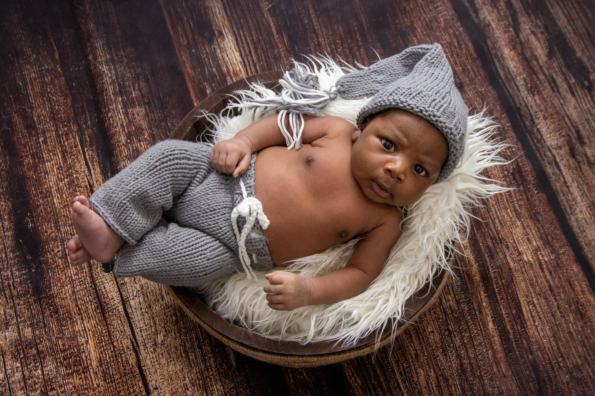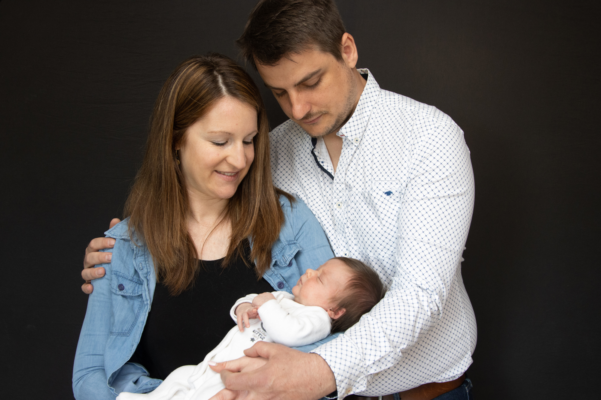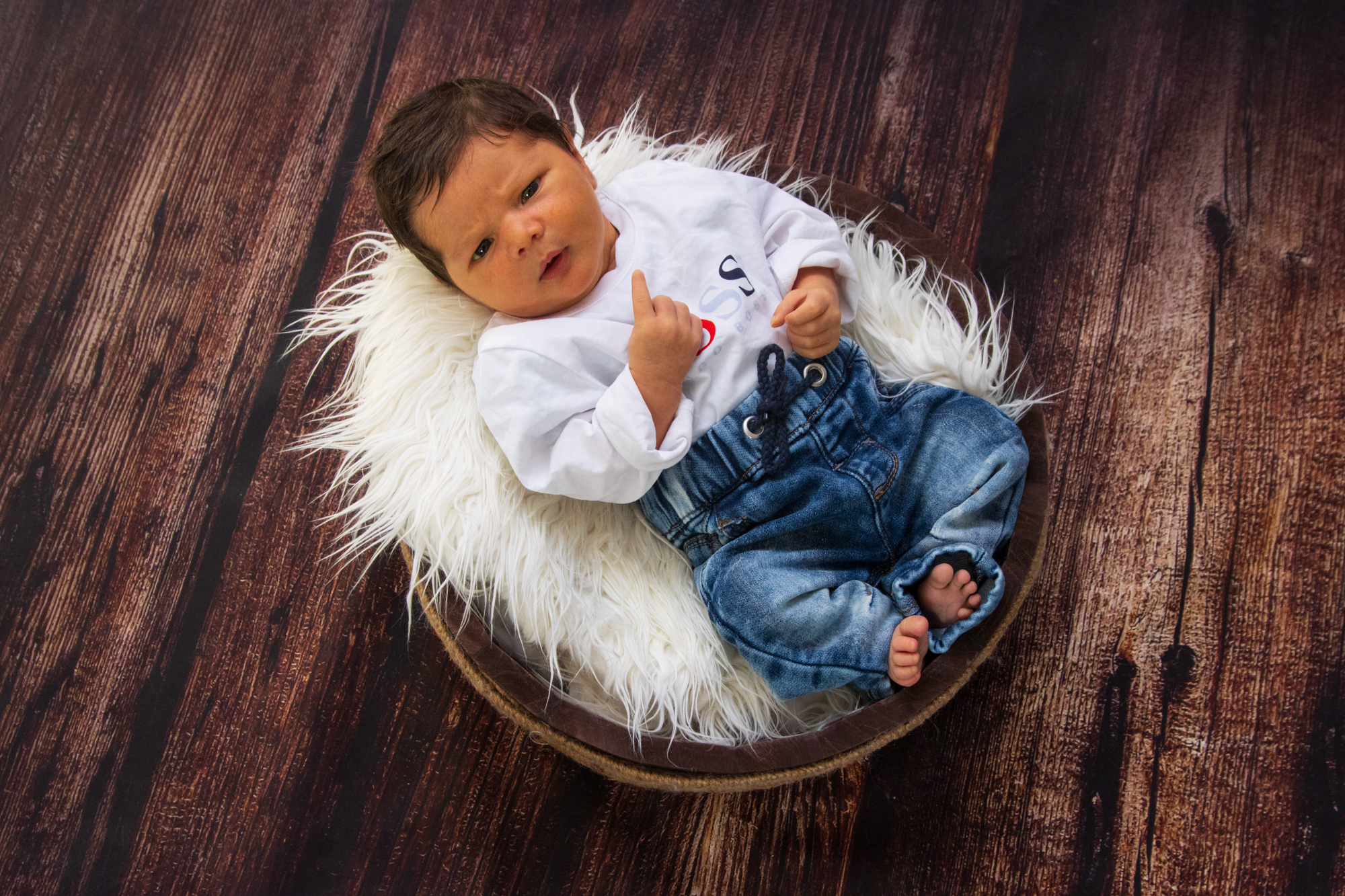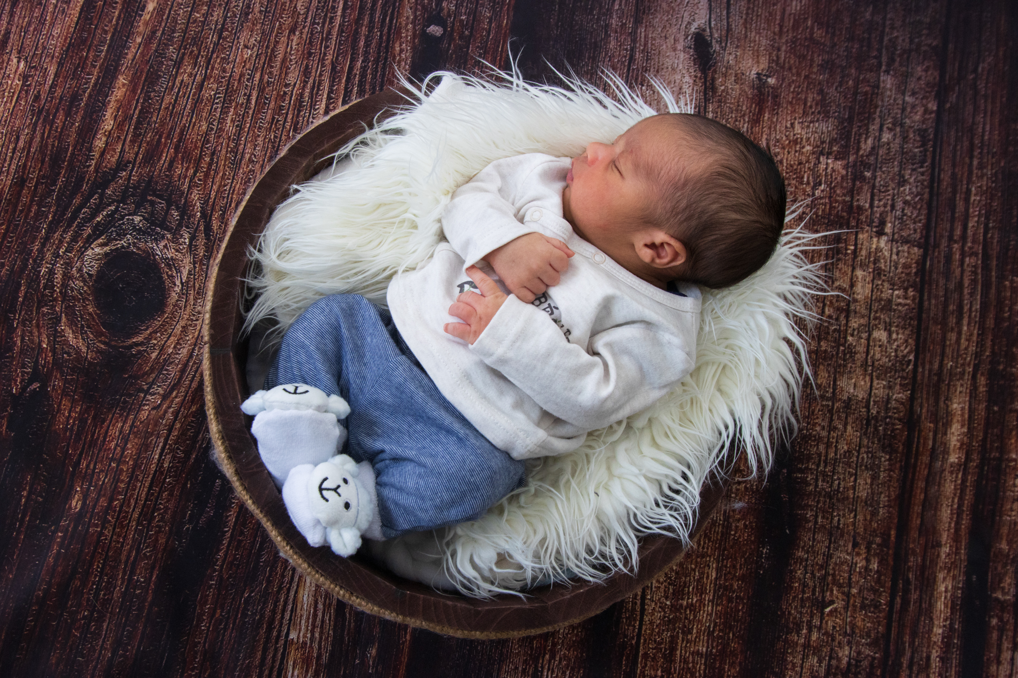 Formule avec accessoires, idéalement pour les nouveau-nés avant 15 jours avec couverture blanche lisse + couvertures en laine Merinos + décors effet bois + petites tenues + paniers + utilisation des petits fonds pliables noir et blanc pour les photos avec les parents. Détails des accessoires ici