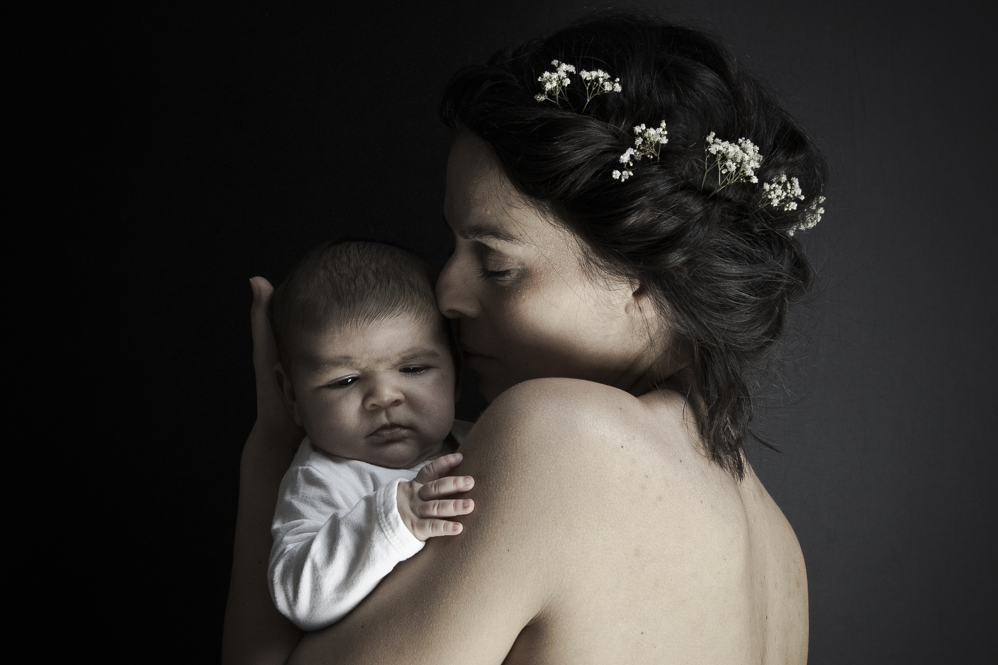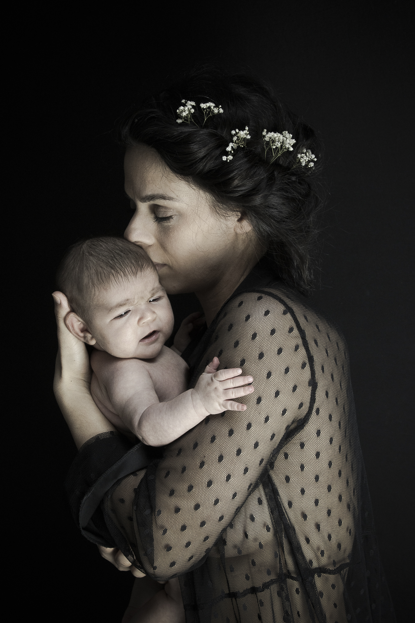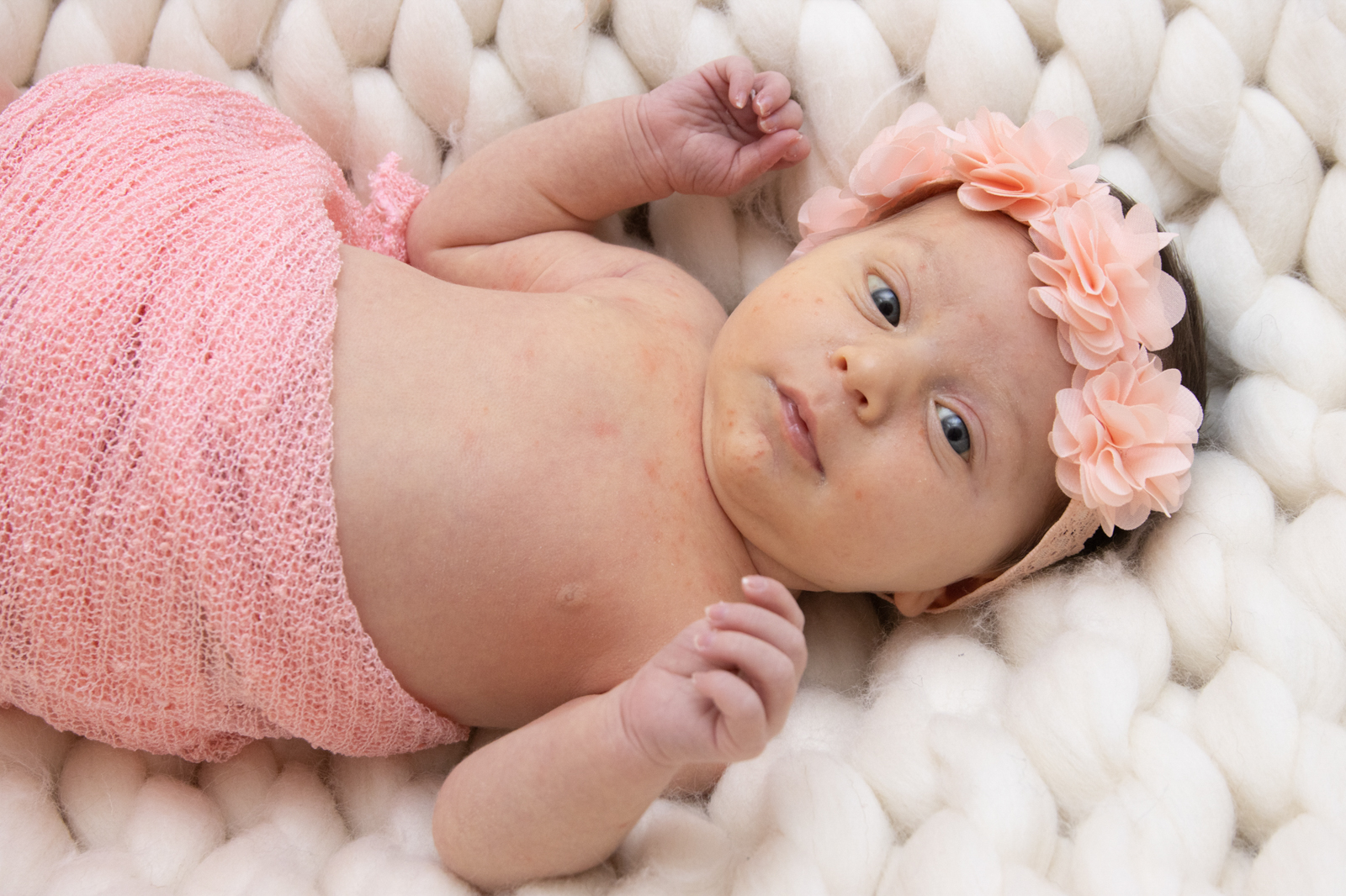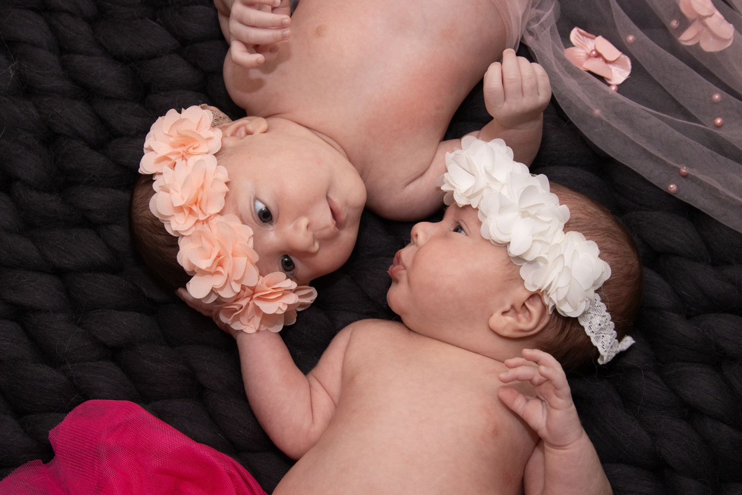 Formule avec accessoires, idéalement pour les nouveau-nés avant 15 jours avec couverture blanche lisse + couvertures en laine Merinos + décors effet bois + petites tenues + paniers + utilisation des petits fonds pliables noir et blanc pour les photos avec les parents. Détails des accessoires ici